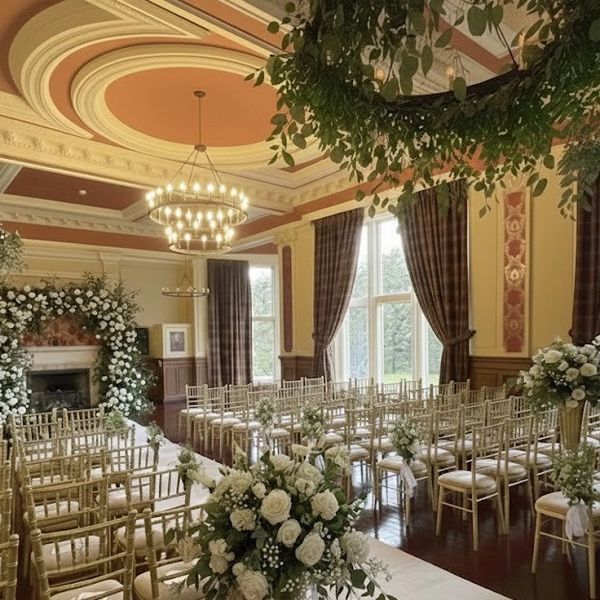 Hire of 80 gold cheltenham chairs in ballroom.